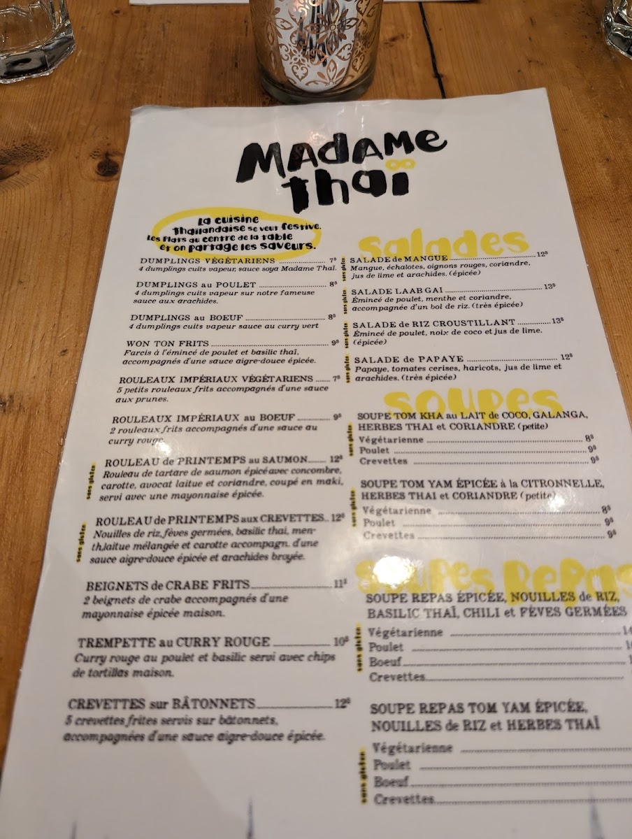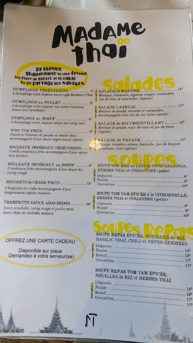 Madame Thai Vieux-Longueuil Menu (2025 Update)